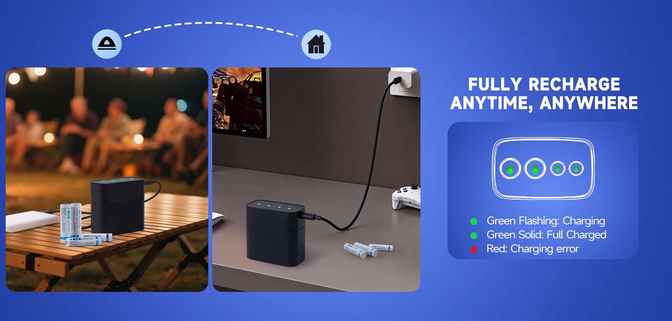 Home Charger Charging Box 2 Slot AA+2 Slot AAA Li-ion Battery Charging Box